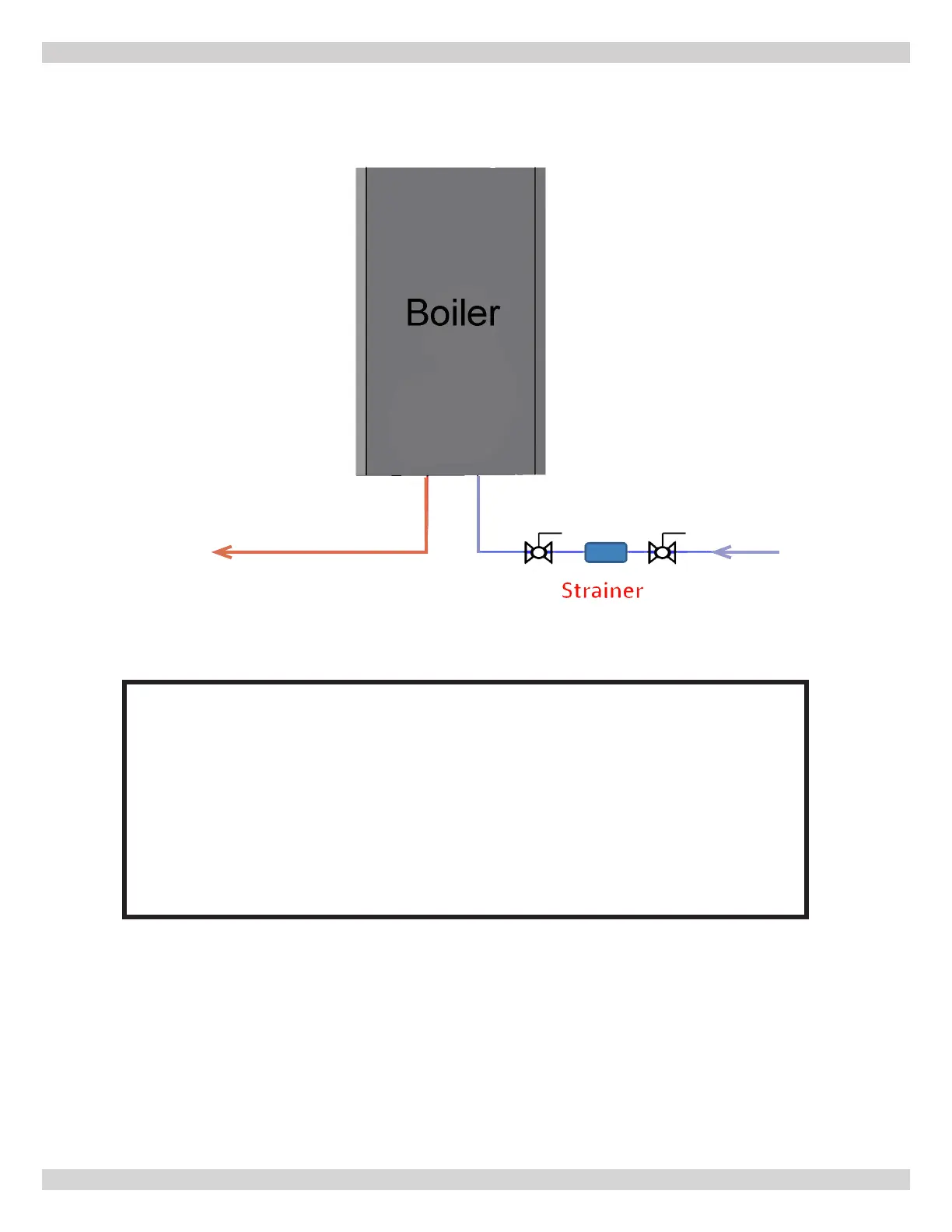 the boiler. The strainer prevents any sedimentation and debris from your water supply piping