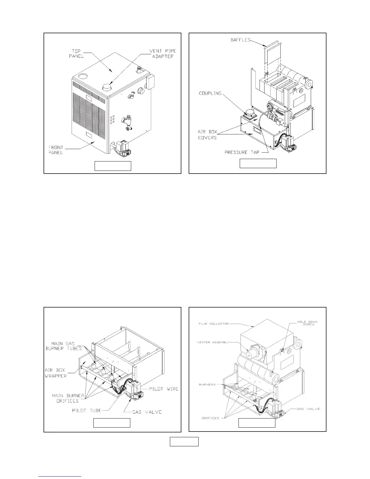 H. Remove the flue collector and venter assembly from the boiler castings by removing