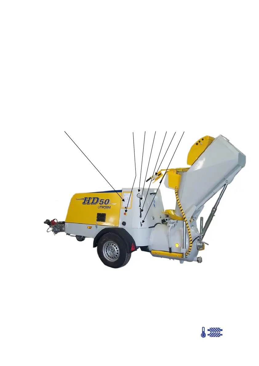 Indicates work pressure of the unit. It is situated inside the machine on the gas-oil tank.