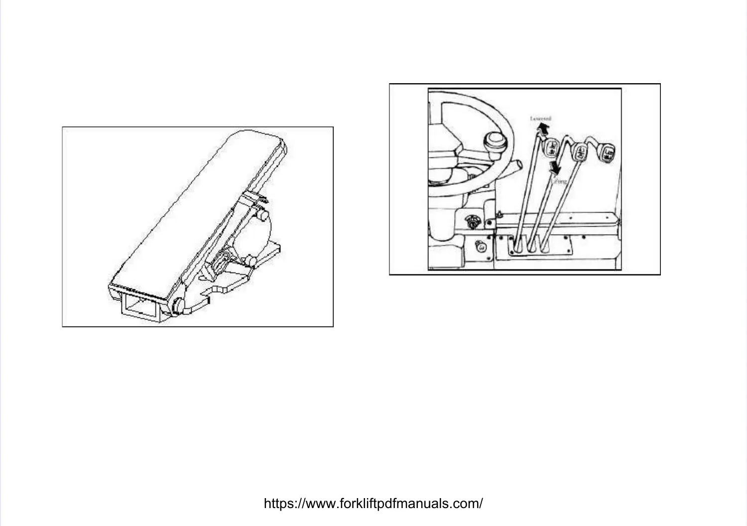 Lift forks by tilting lever backward. Lower forks byLift forks by tilting lever backward. Lower forks by