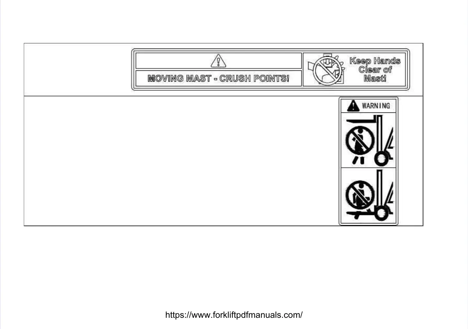 4.4. Fork Warning Label:Fork Warning Label:DO NOT stand on or DO NOT stand on or under the forks or carriage;under the forks or carriage;