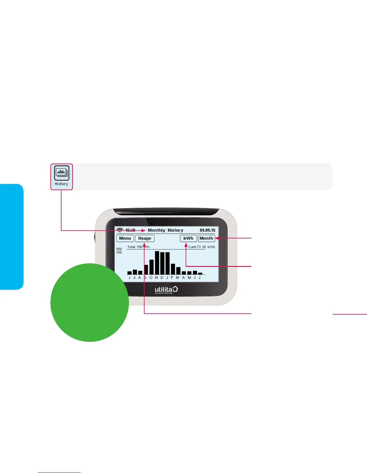 Pressing the 'History' button on the 'Main Menu' will display the below screen, allowing you to view your energy