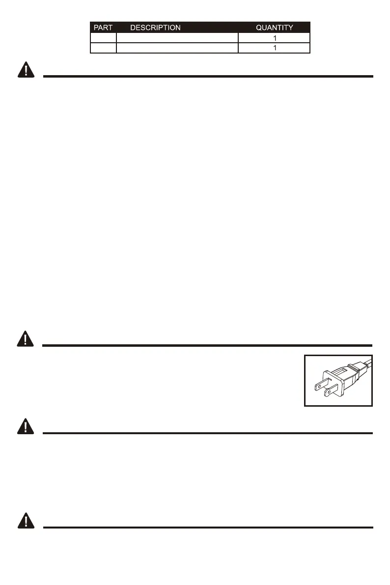 NOTE: This appliance has a polarized plug (one blade is wider than the other). The polarized
