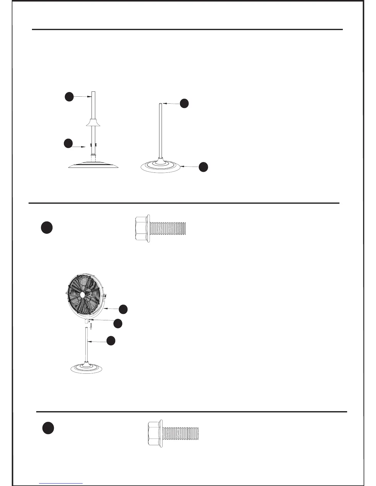 2. Inserte la abrazadera en U del cuerpo del ventilador (A) en la varilla de soporte (B) y luego asegure
