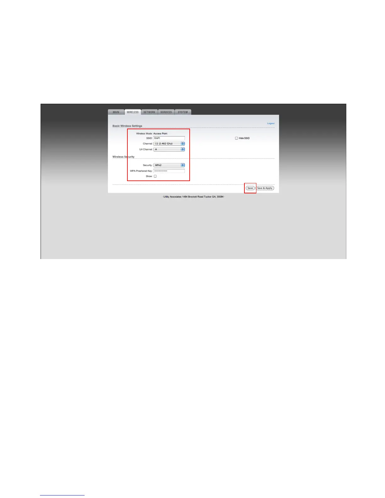 6. Choose your security settings option by selecting None/WPA/WPA2 from the Security field.