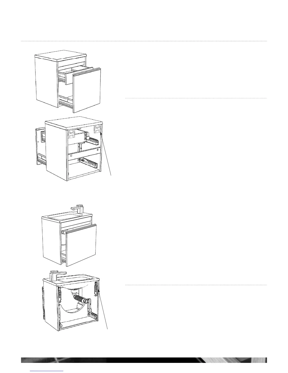 rear panel, fold the arm inwards across the drawer front, the arm can then be pulled from