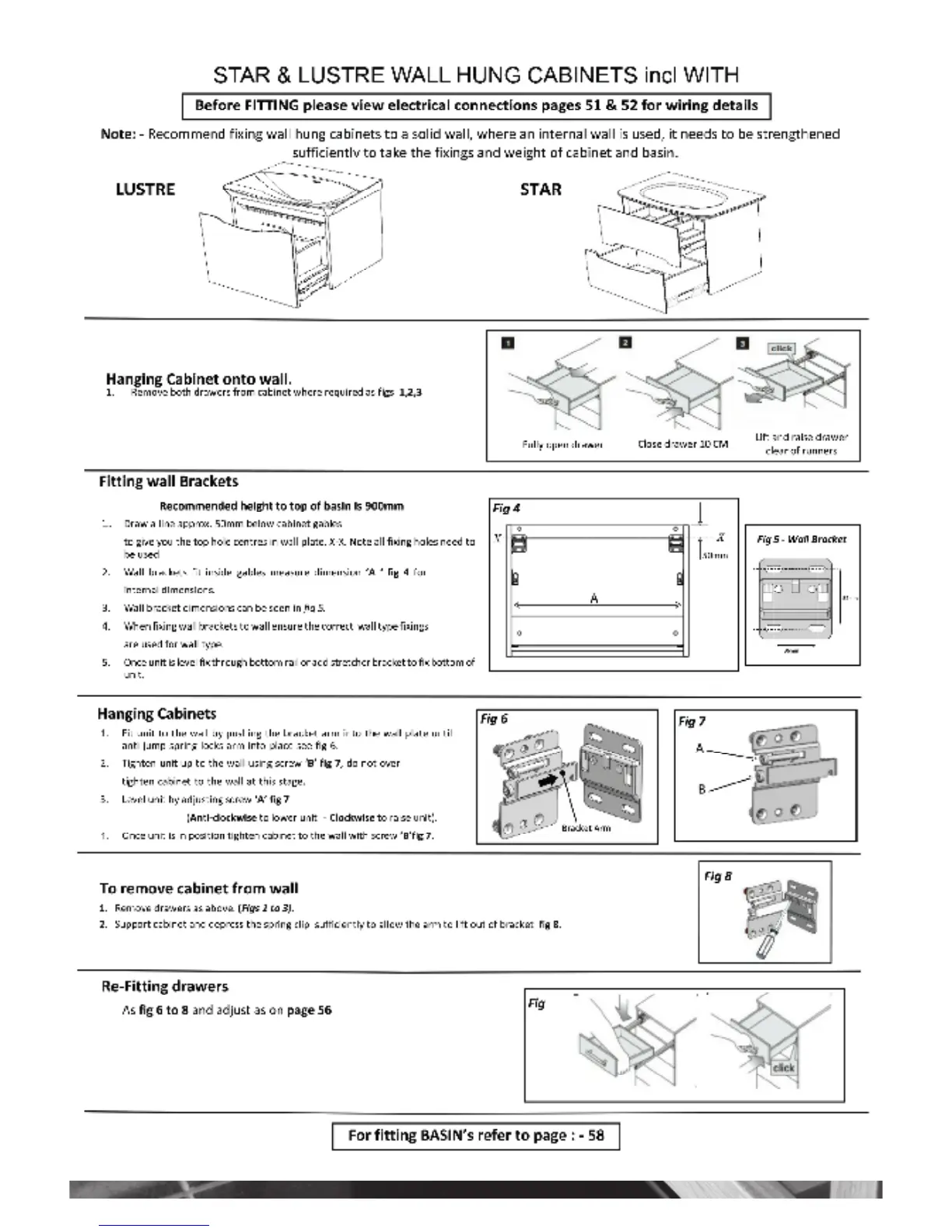 Utopia Lustre series - Star & Lustre Wall Hung Cabinets; Cabinet Hanging and Bracket Installation