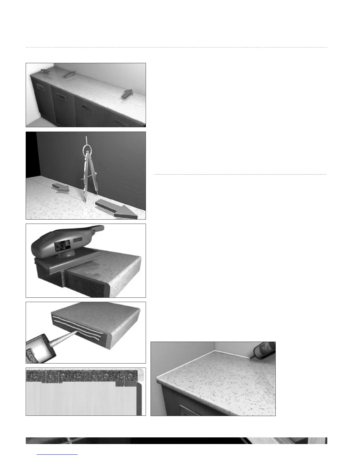 If the worktop needs scribing to the wall contours do so using a compass and pencil