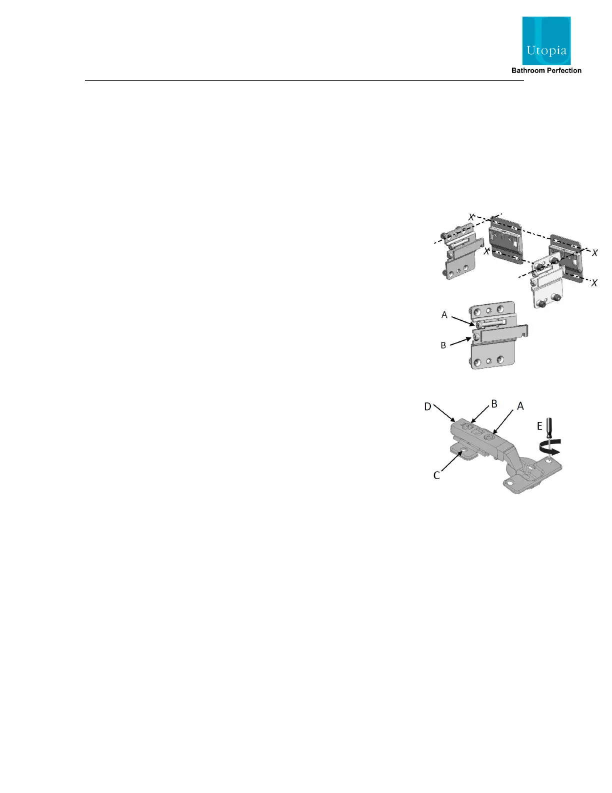 • To adjust the door vertically, slacken screws C. Re-tighten once