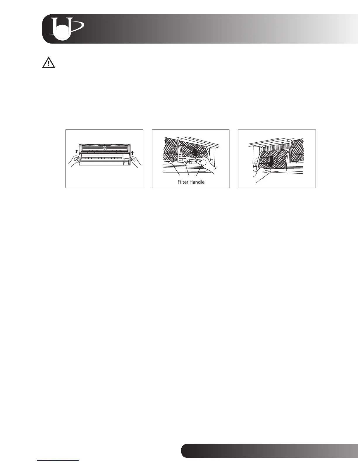 • Do not touch the metal parts of the unit when removing the lter. Injuries can occur when handling sharp metal edges.