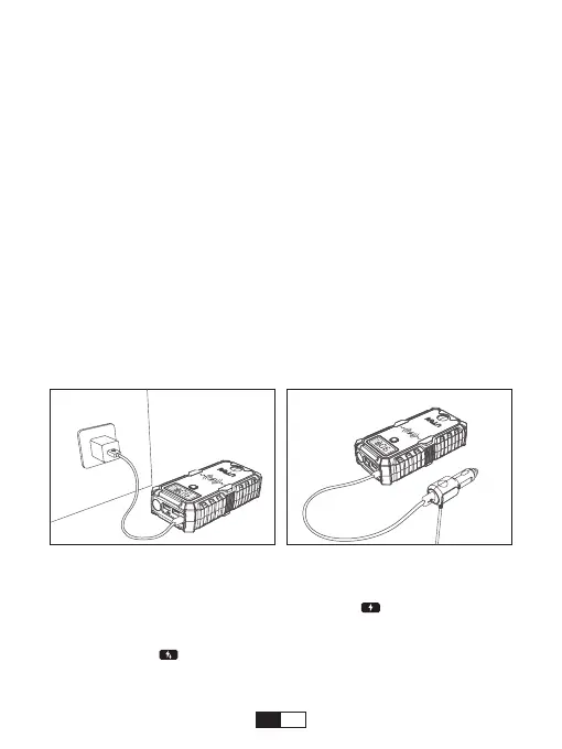 1. Quando si carica l'avviatore di emergenza, "IN" e " " appaiono allo stesso