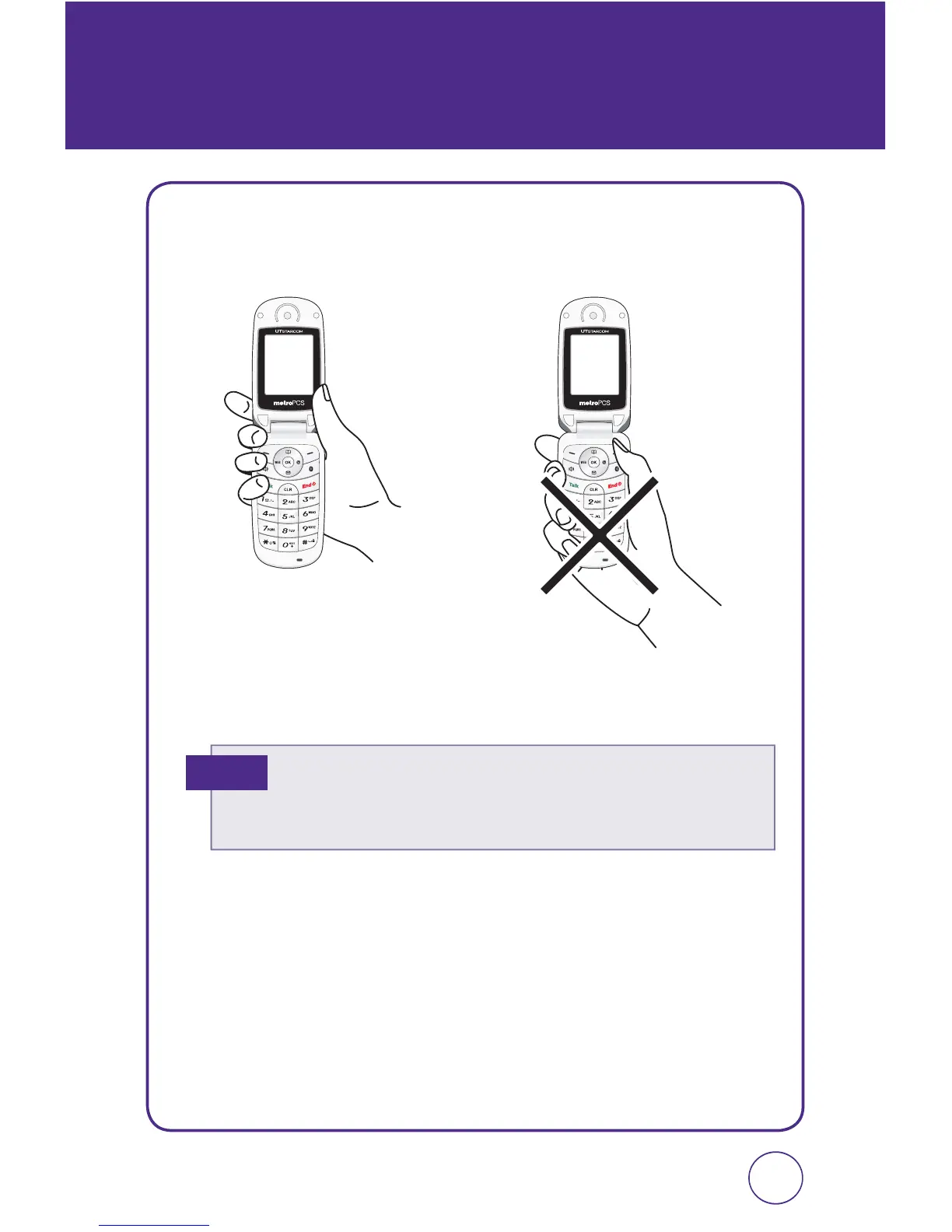 UTStarcom cdm7126 - Blocking Antenna While Making a Call; Correct;Incorrect Finger Position