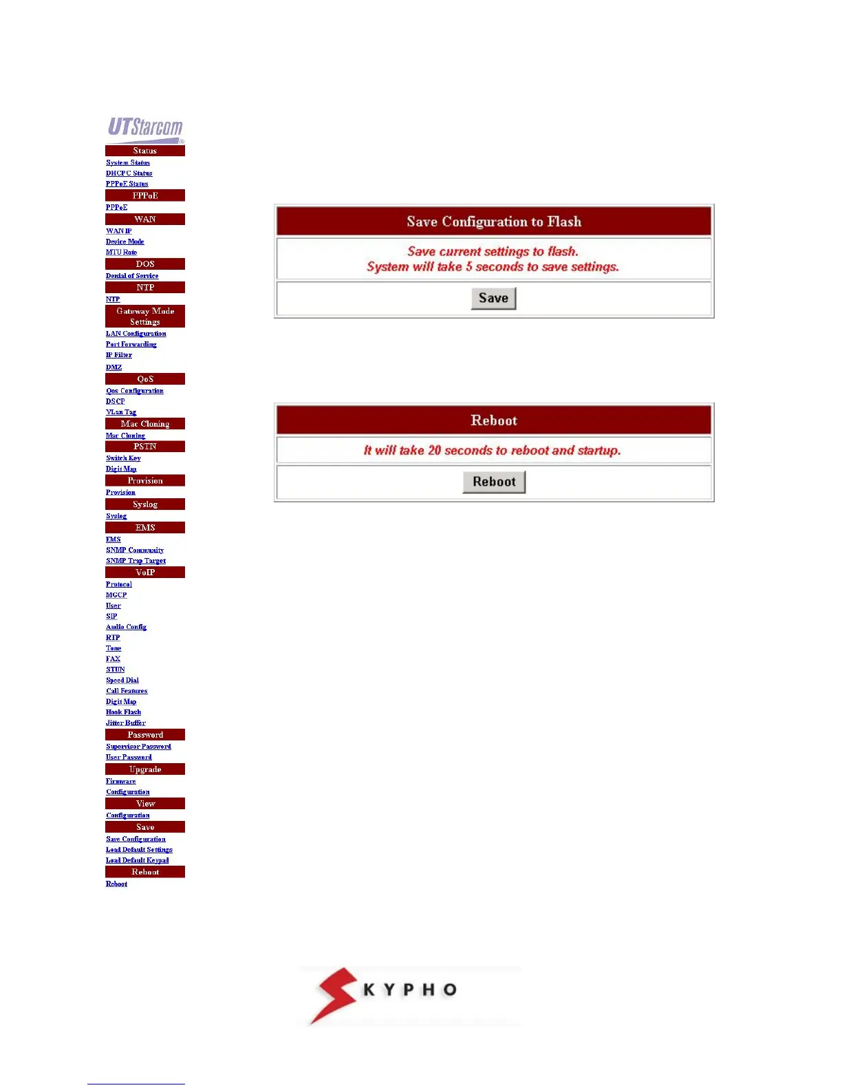 UTStarcom IAN-02EX - Save Configuration