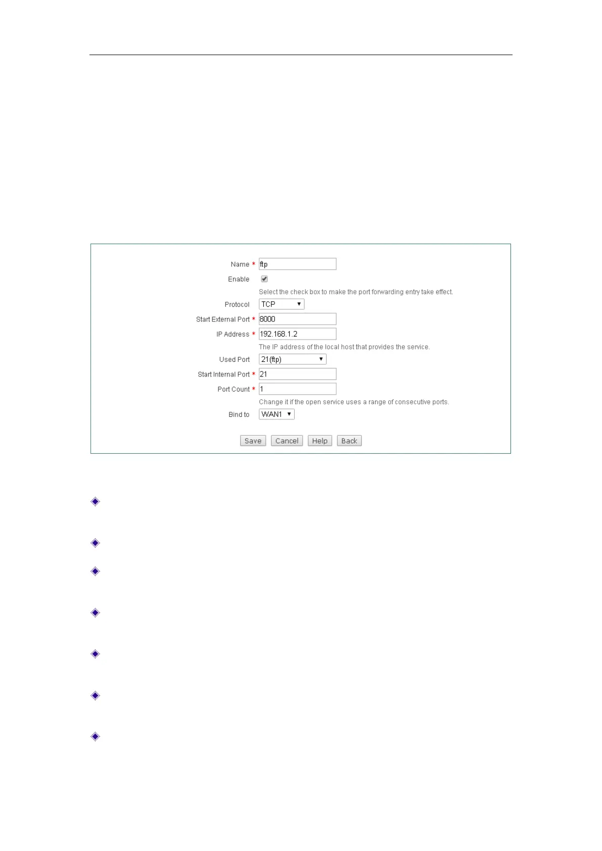 Figure 7-2 Port Forwarding Setup