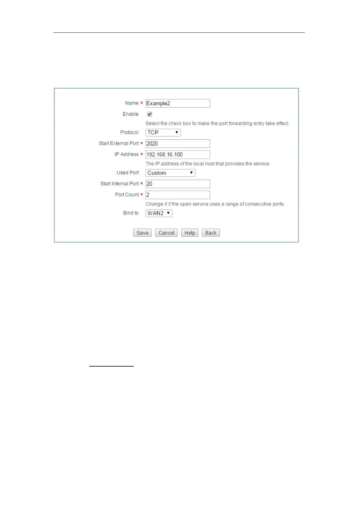 Figure 7-4 Port Forwarding Settings - Example Two