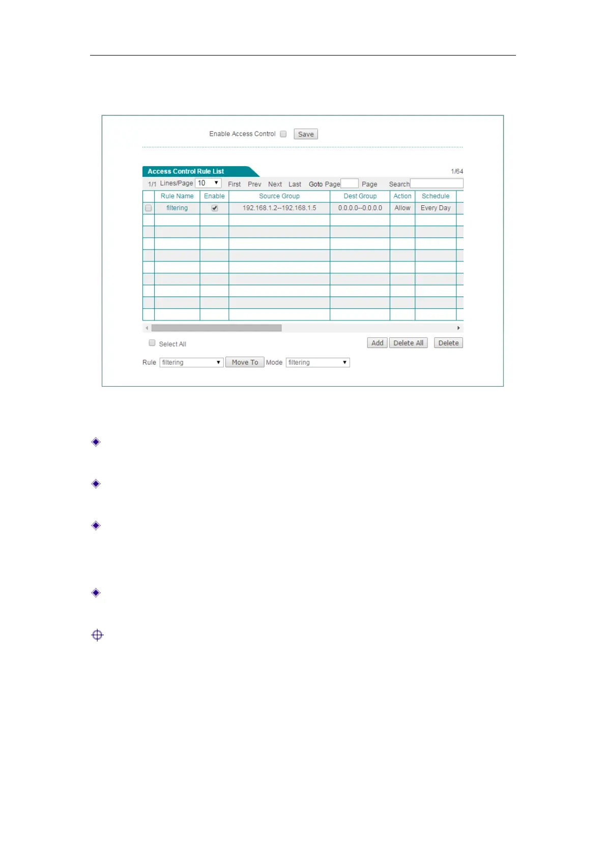 Move an Access Control Rule: The Device allows you to move an access control