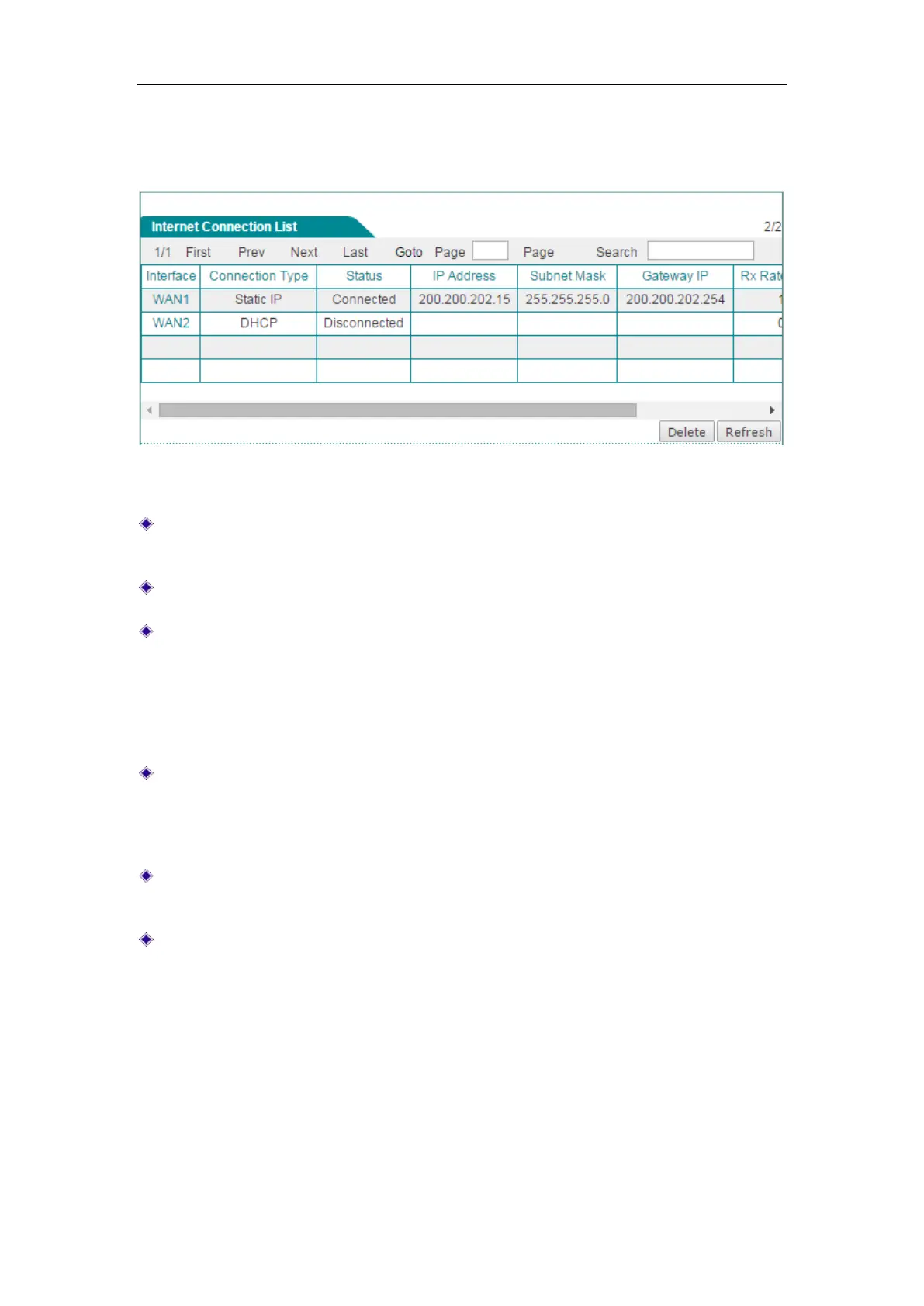 Internet Connection List. Click Refresh button to view the current status of the