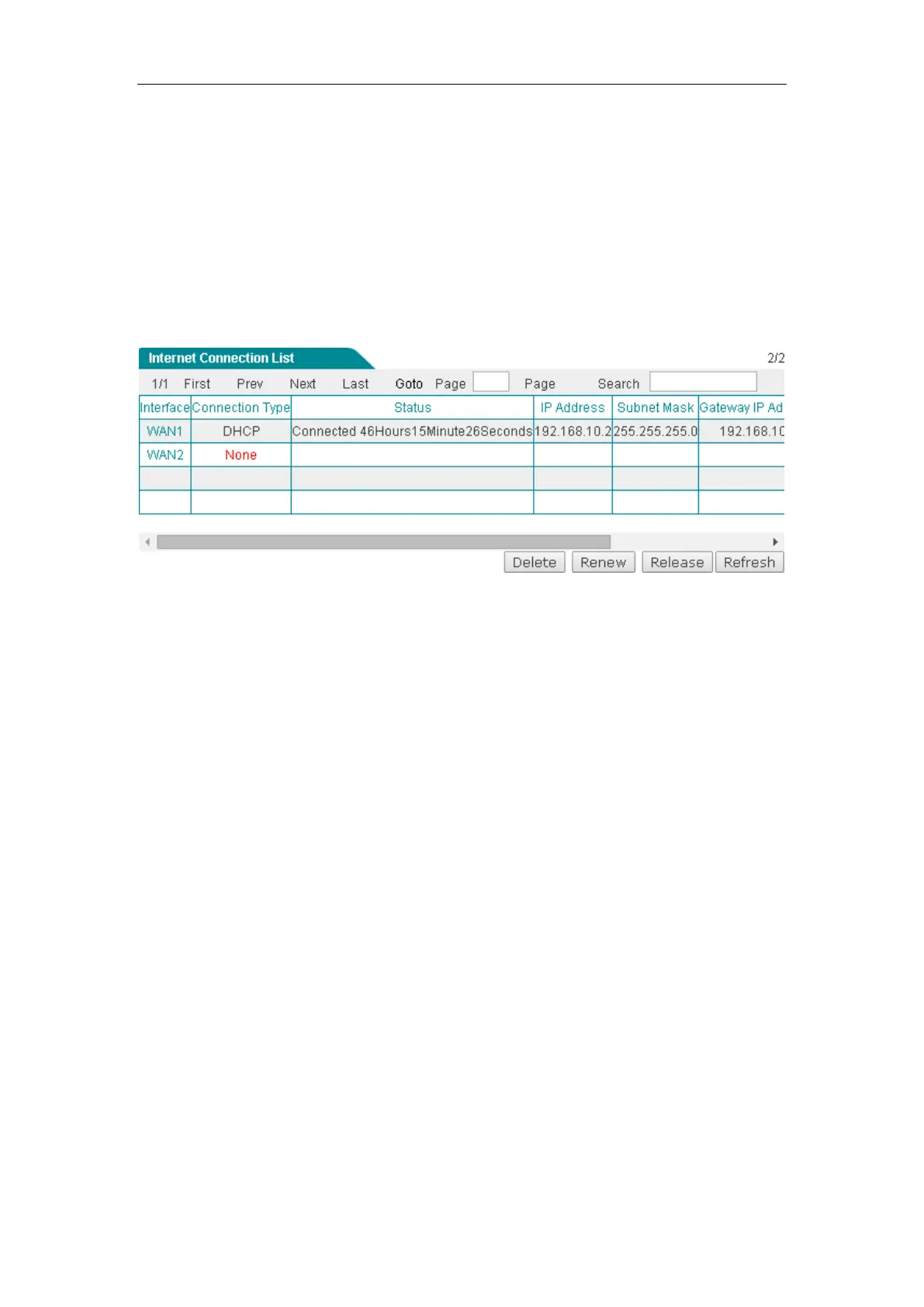 Release and Refresh buttons will be shown on the Internet Connection List.