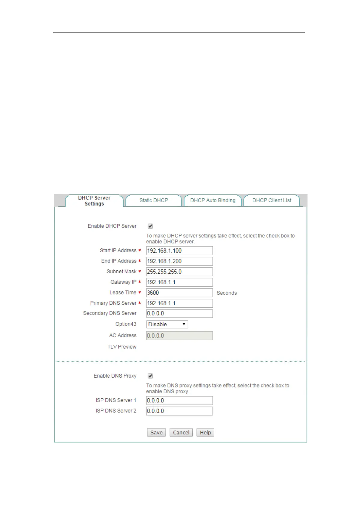 Figure 4-14 DHCP Server Settings