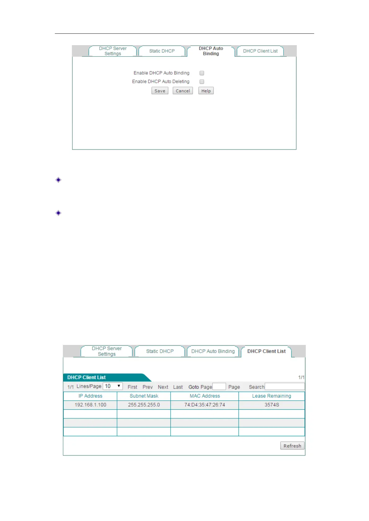 Enable DHCP Auto Binding: If selected, once a LAN host obtains an IP address