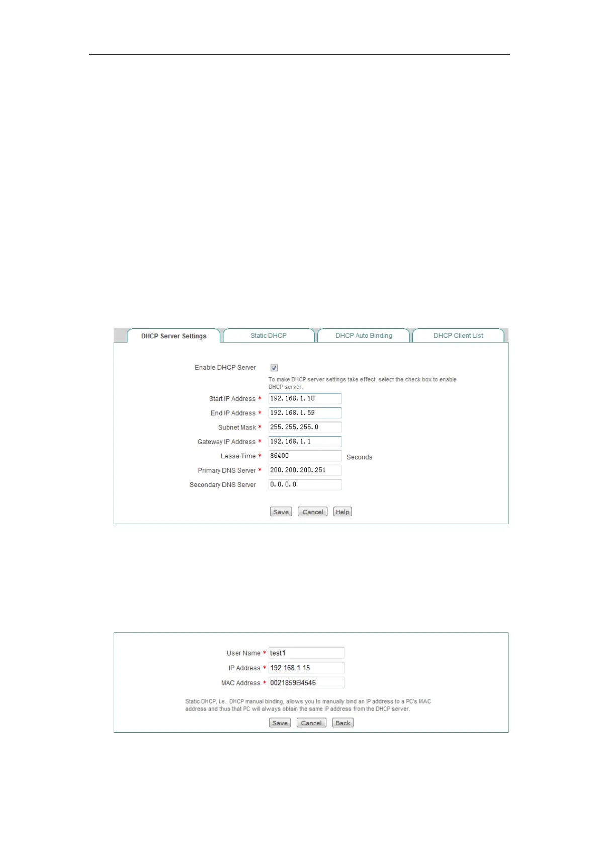 Step 3 Go to Network > DHCP Server > Static DHCP page and click the Add