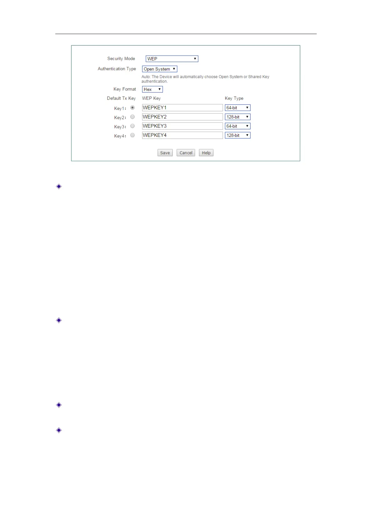 Authentication Type: Select the authentication type under WEP security mode.