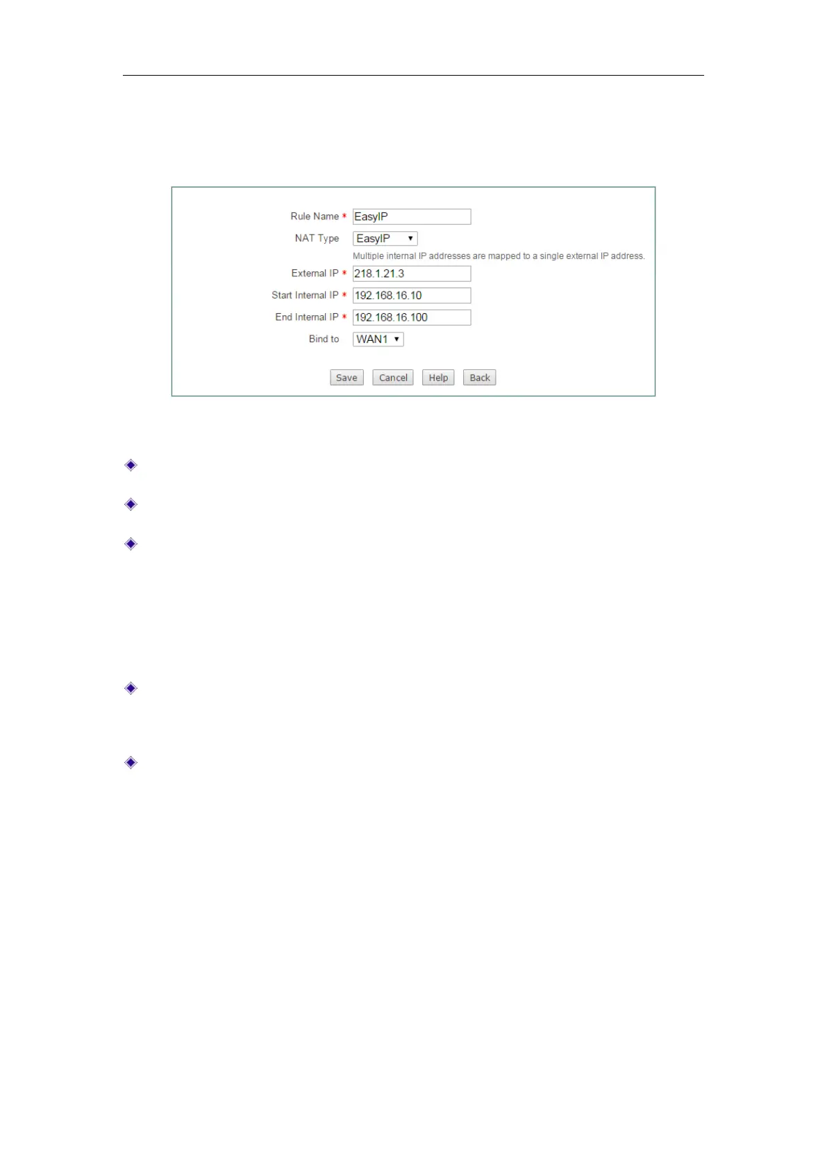 External IP: Specify the external IP address to which the LAN hosts’ IP addressed