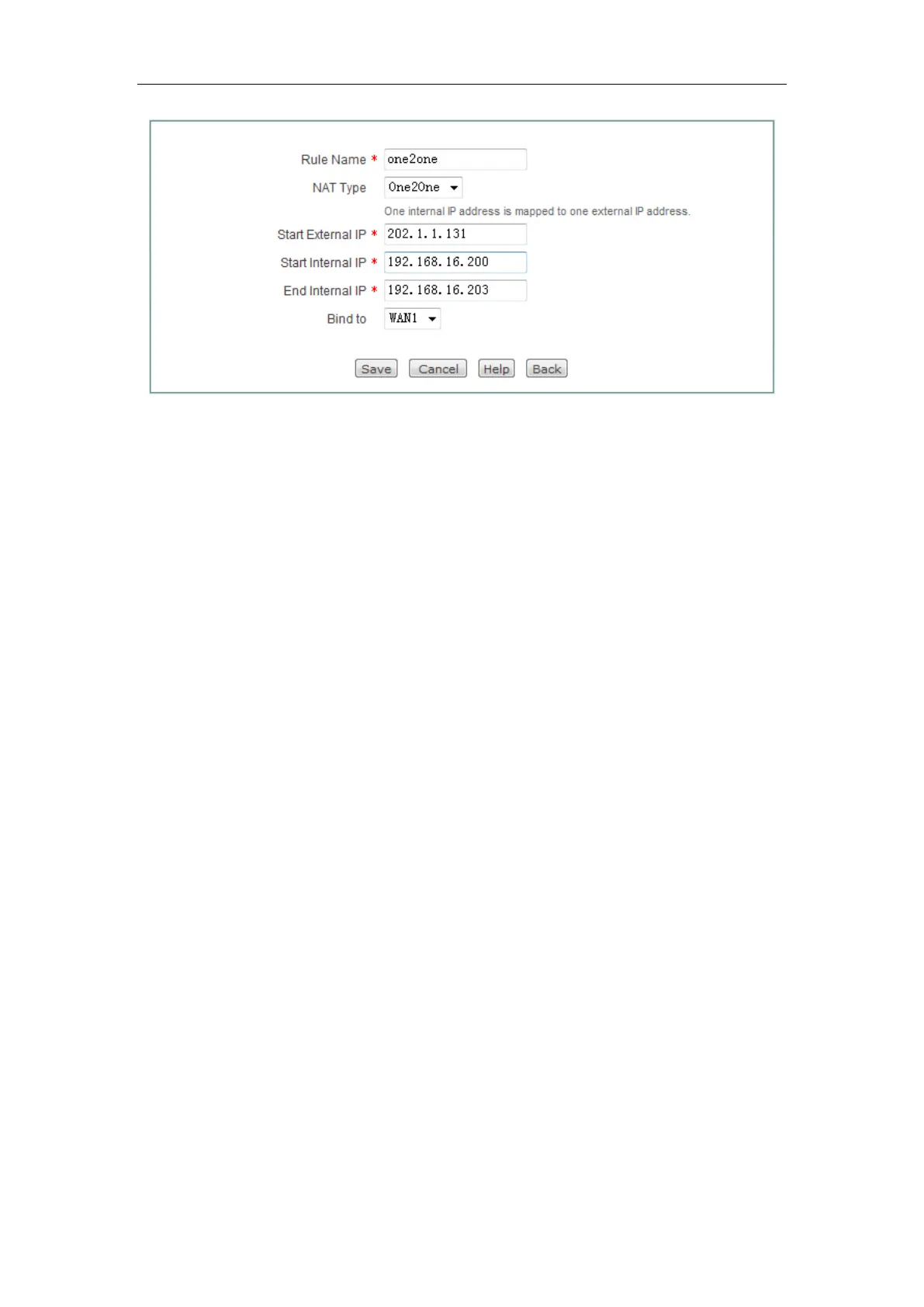 Figure 7-10 One2One NAT Rule Settings - Example