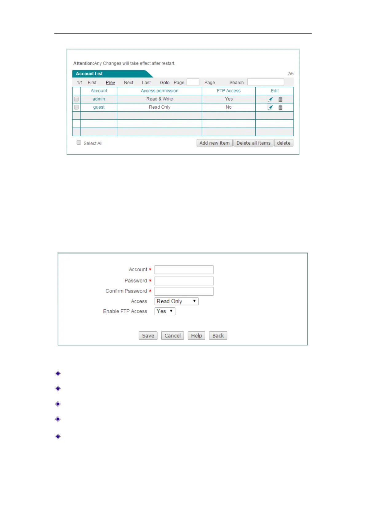 Figure 8-5 Shared Account Settings