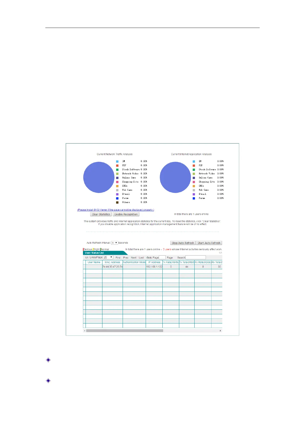 information of each user, including Rx/Tx rate, Rx/Tx total traffic, Internet behavior,