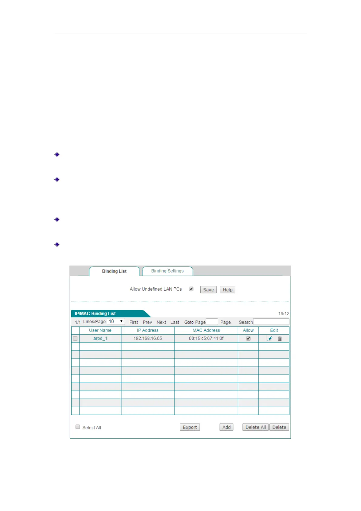 You can view and edit all the IP/MAC Binding entries on User Management > IP/MAC