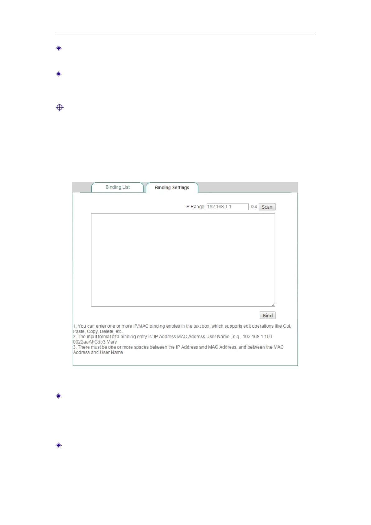 Bind: Click it to bind all the valid IP and MAC address pairs in the list box.