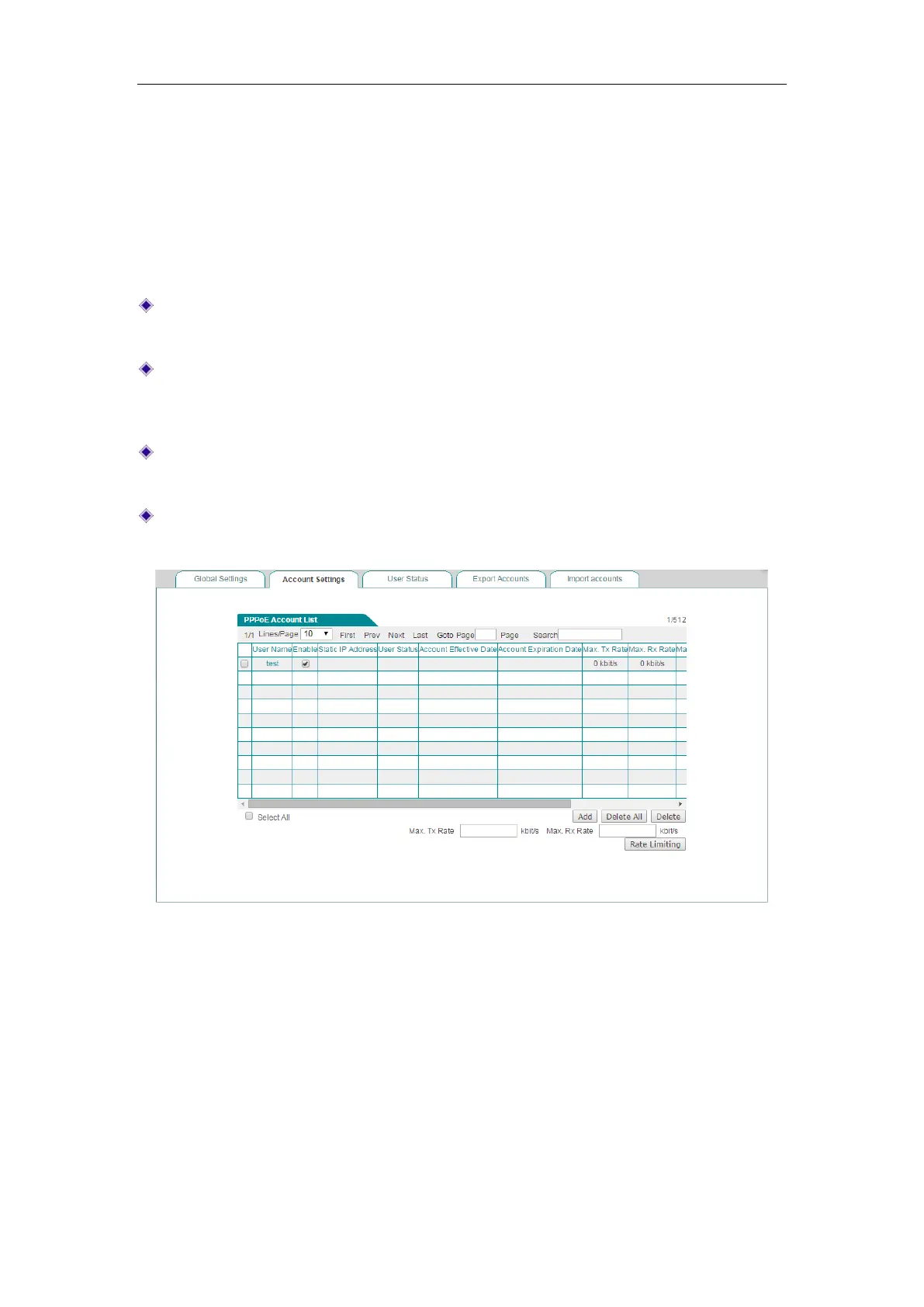 Delete PPPoE Account(s): Select the leftmost check boxes of them, and then