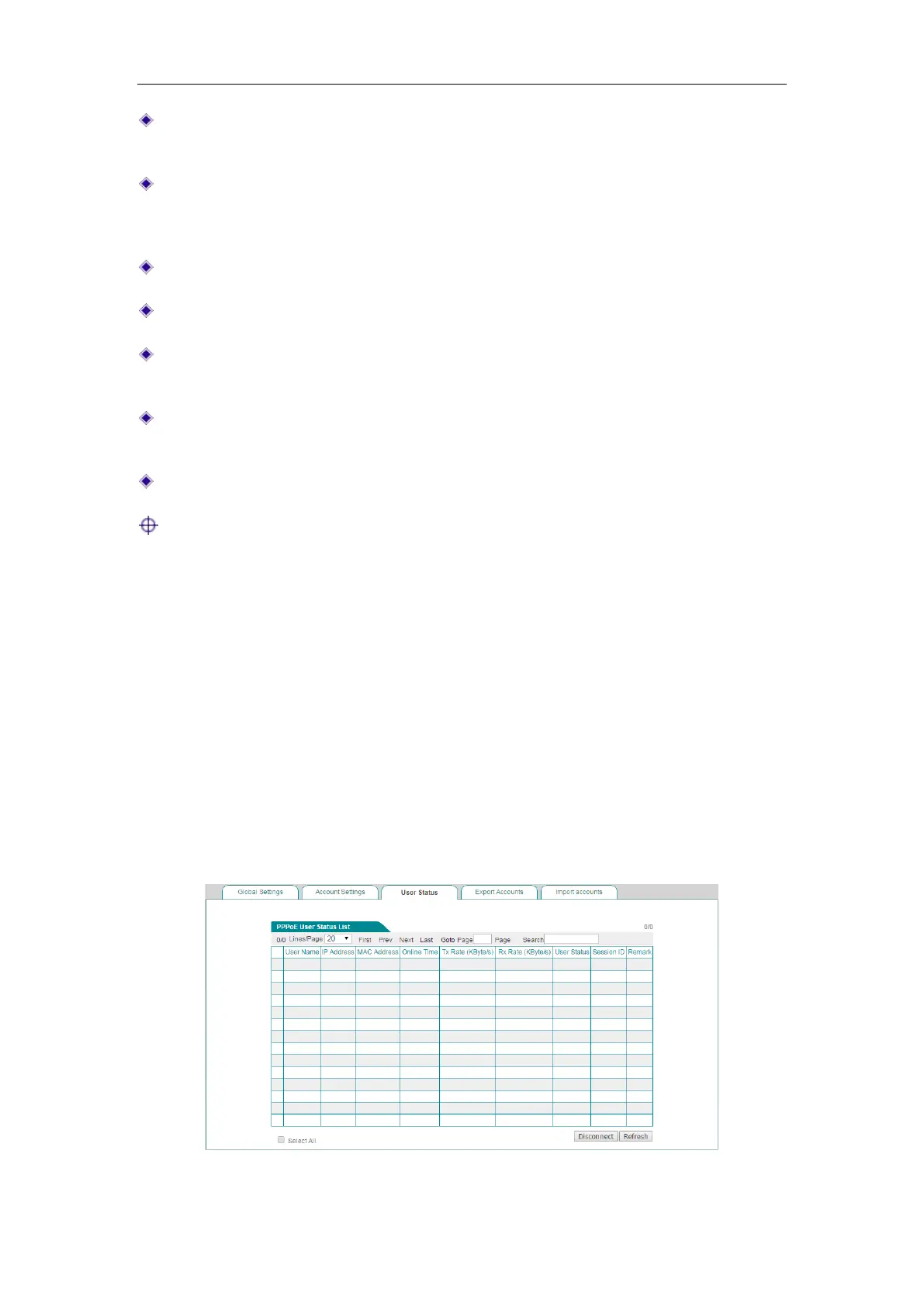 address, Rx Rate and Tx Rate of the user, online time and session ID of the PPPoE