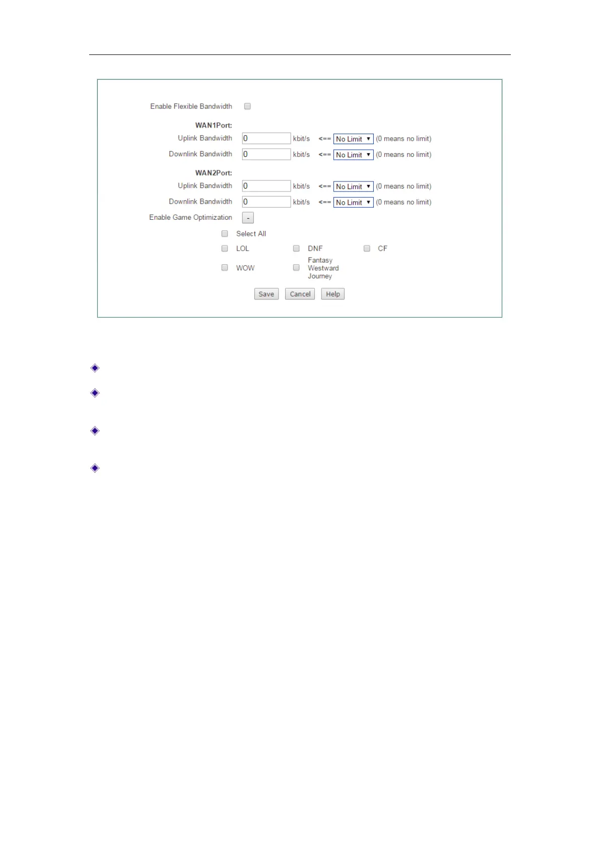 Downlink Bandwidth: Specify the download speed of Internet connection. 0 means