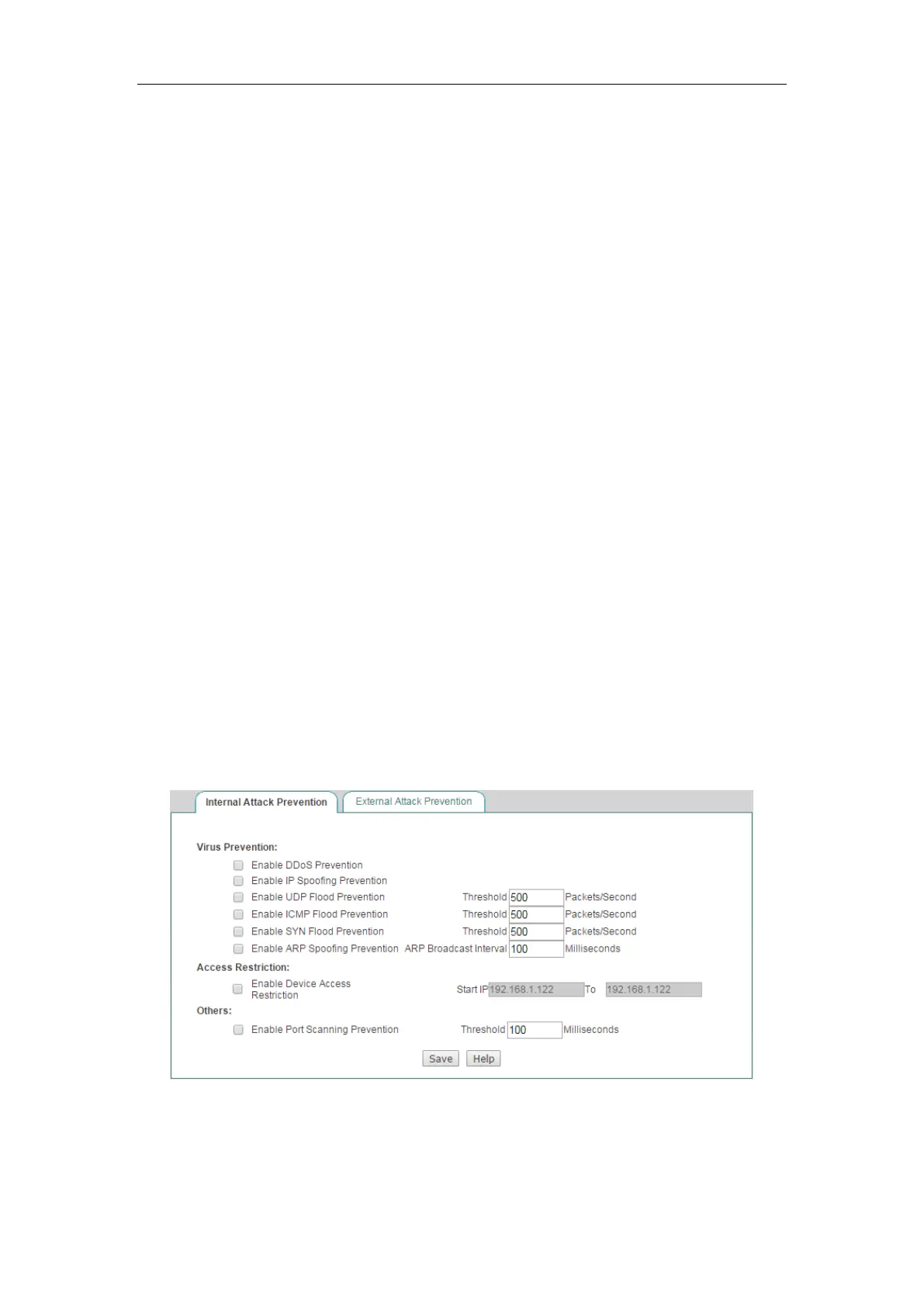 Figure 12-1 Internal Attack Defense Settings
