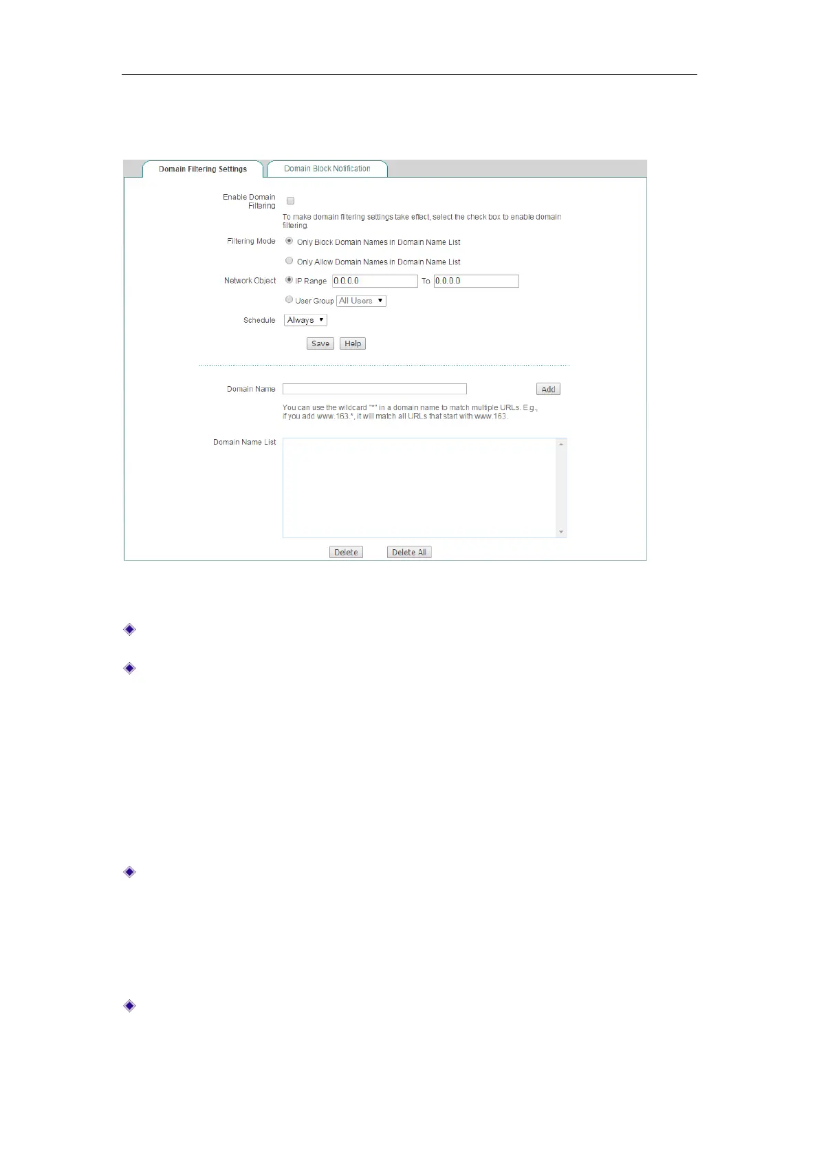 Enable Domain Filtering: Select to enable this domain filtering entries