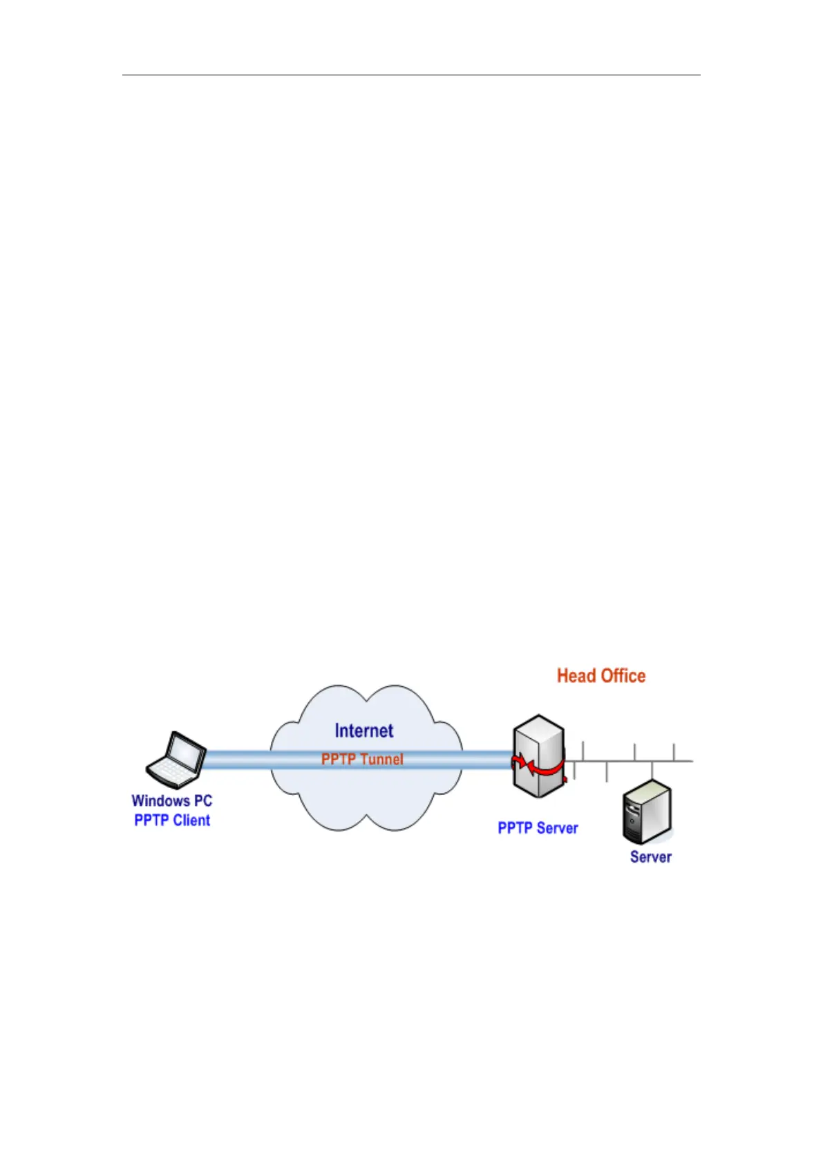 transmission over a public IP network such as the Internet. The PPTP client or server