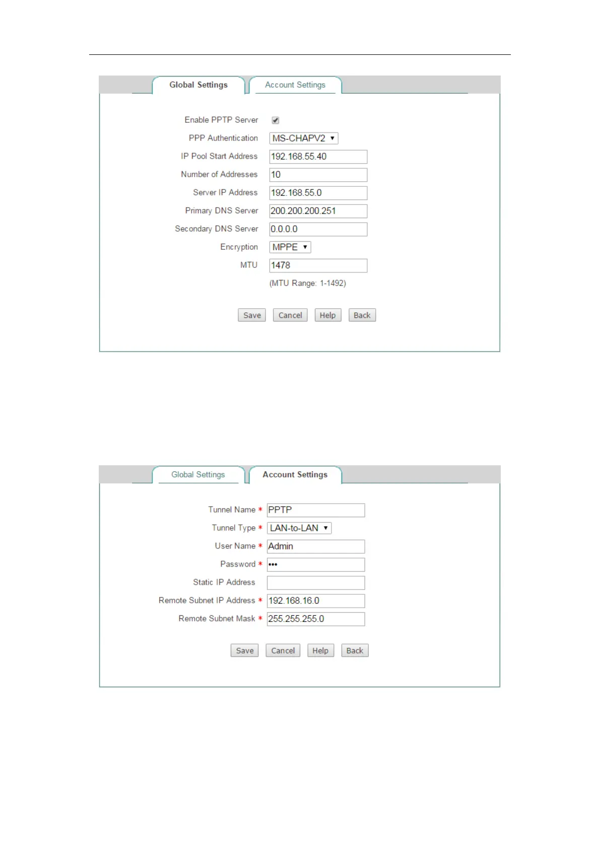 Figure 13-9 PPTP Server Settings_LAN-to-LAN