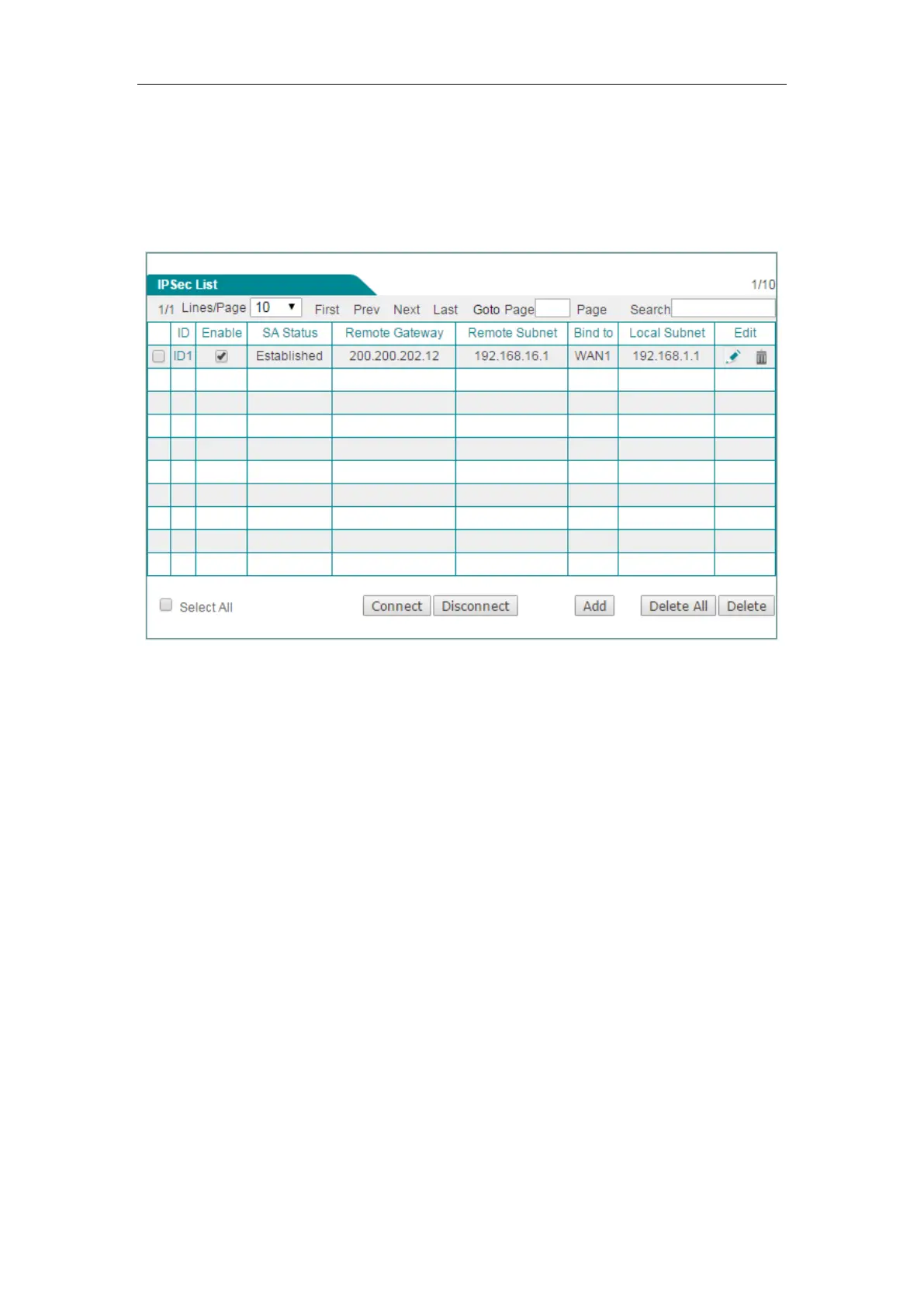 You can view the IPSec entry configuration and status information in the IPSec List.