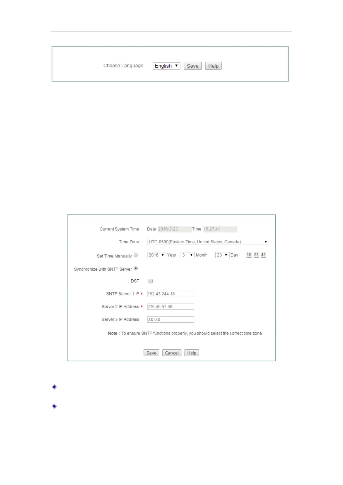 Synchronize with SNTP Server. It is recommended to use the Synchronize with SNTP