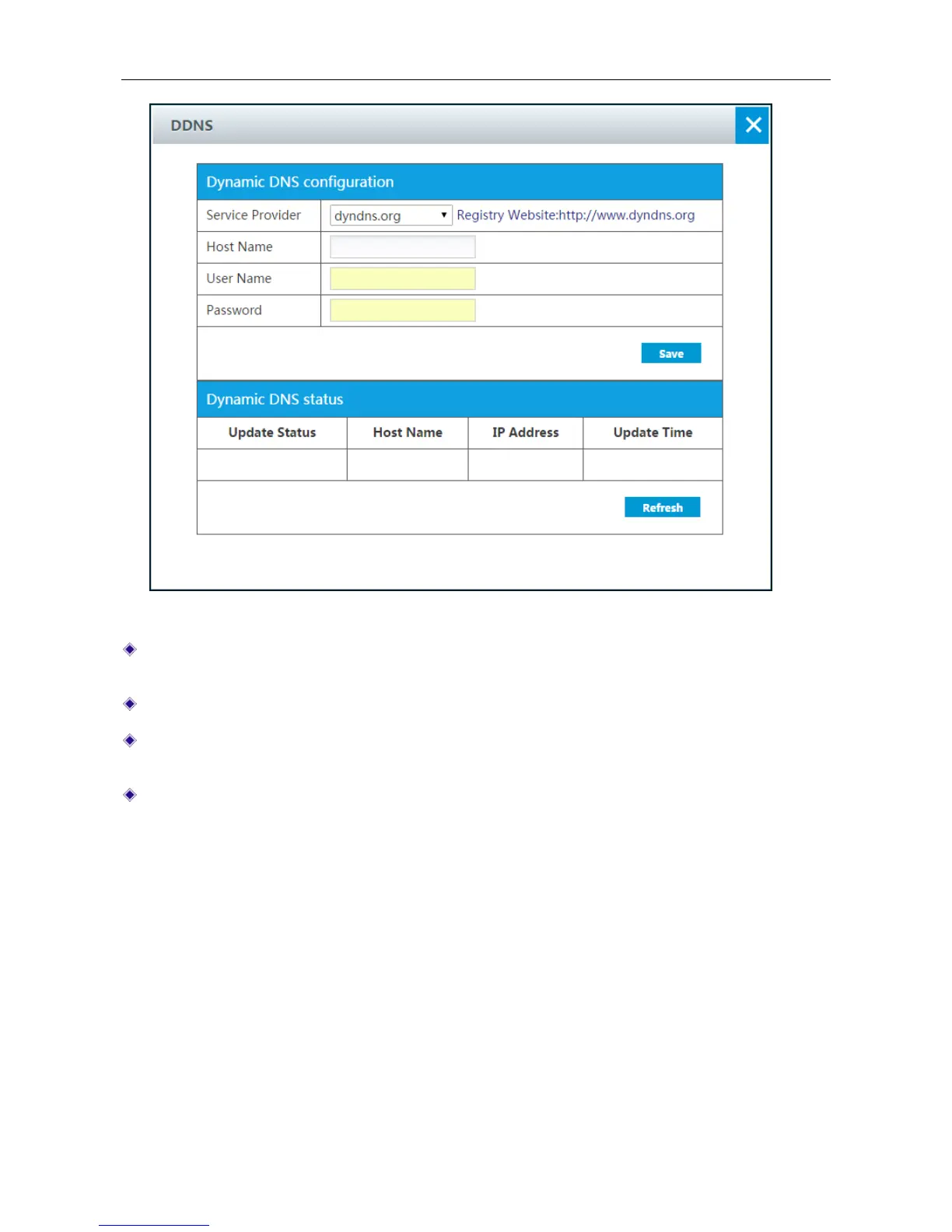 Service Provider: Select the DDNS service provider who offers services to the Device. Here