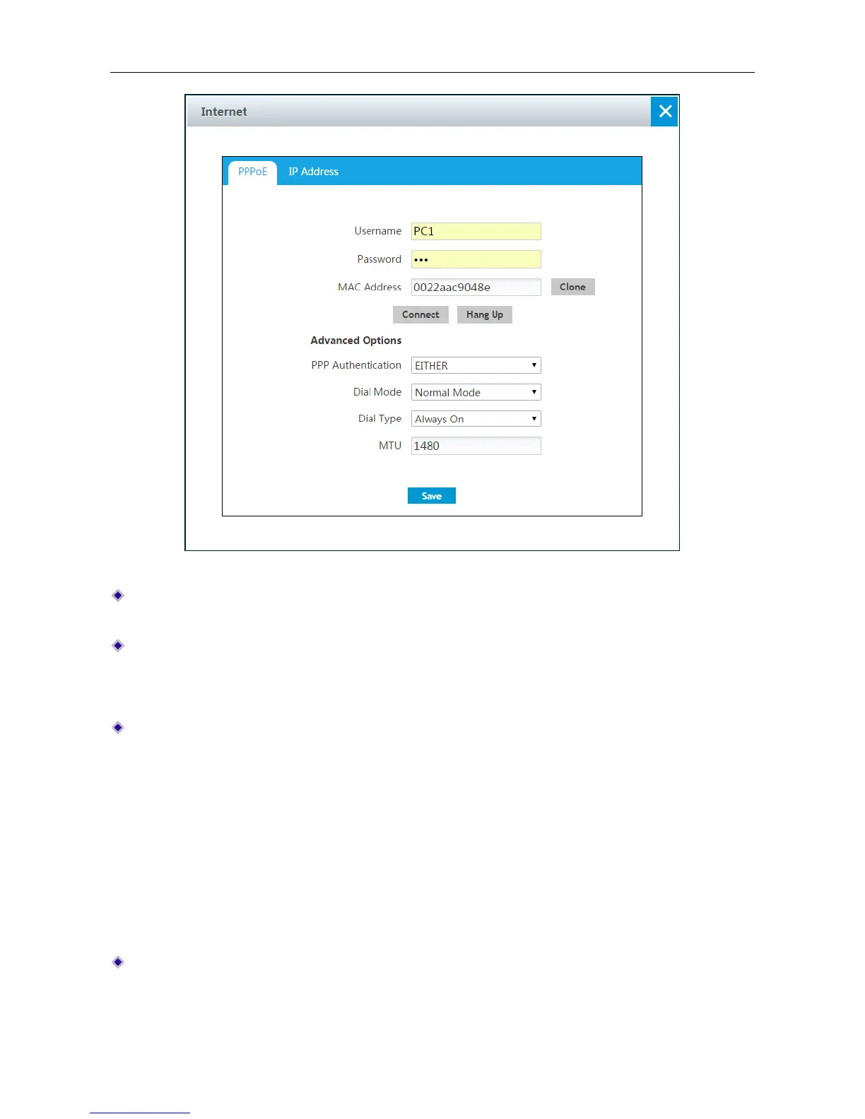 Dial Mode: If the PPPoE connection isn’t established successfully even using correct user