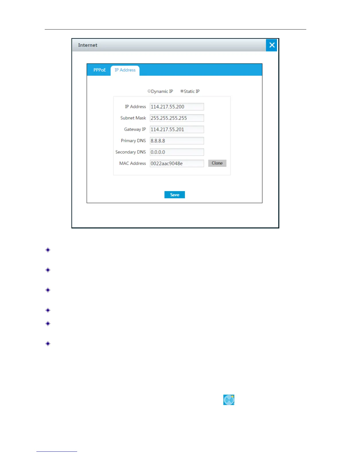 Figure 4-11 Static IP Connection setting