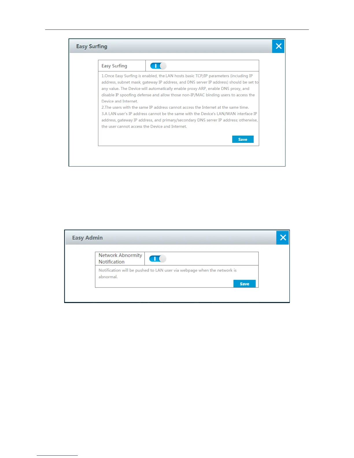 On the Application > Easy Admin page, you can enable easy Admin. When the Device can't