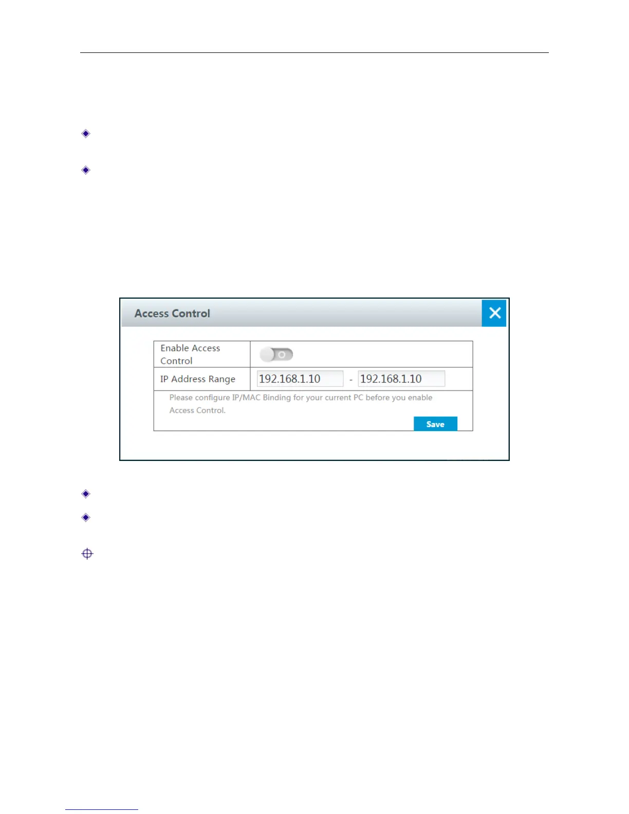 IP Address Range: Specify the IP address range of LAN users who can access to the Device