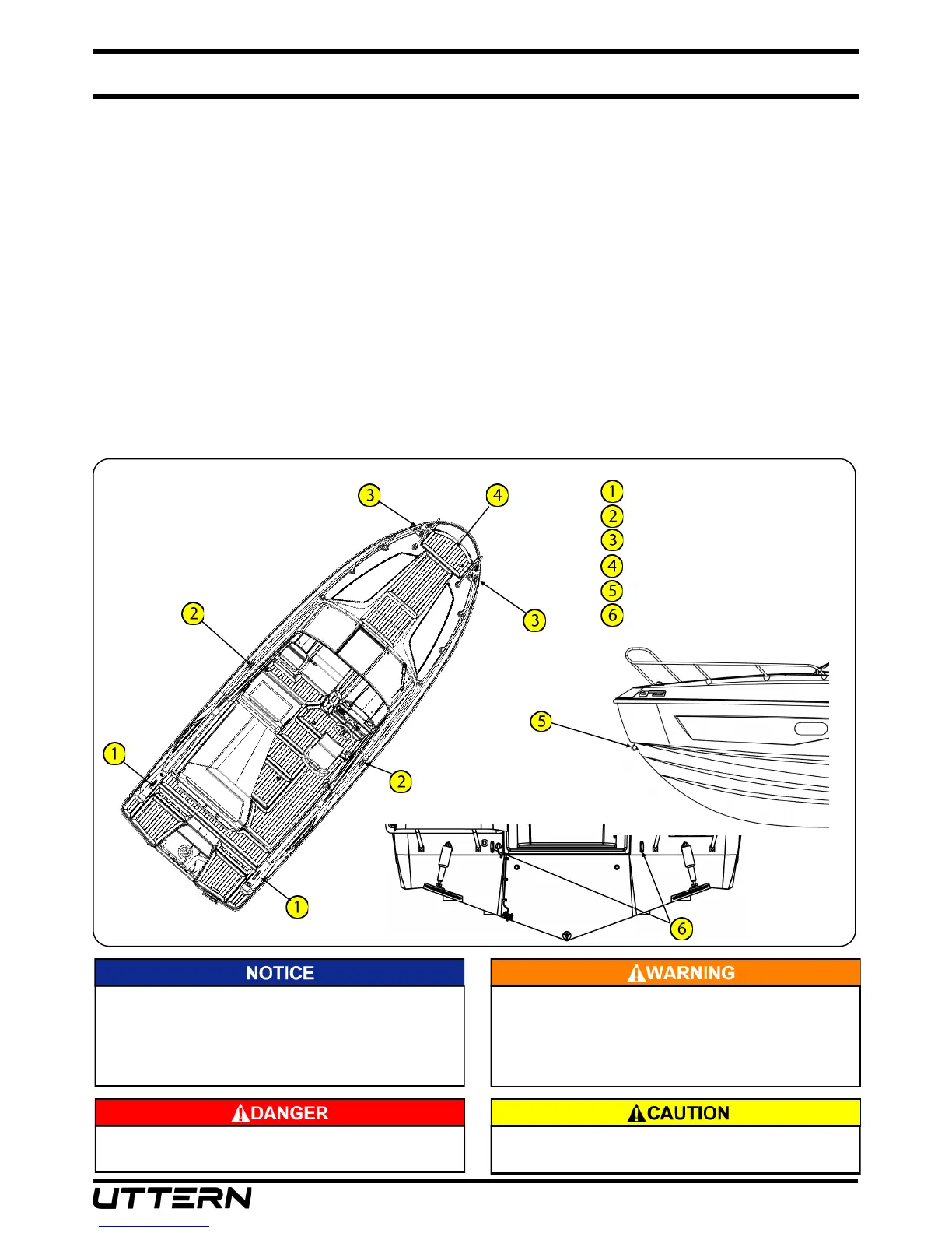 the boat. The bow and stern eyes may be used for short term liing of the boat only.