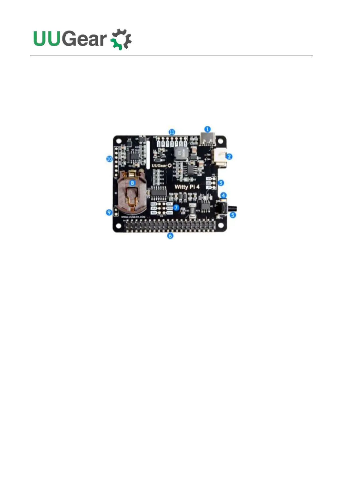 The picture below shows the available interfaces of Witty Pi 4.
