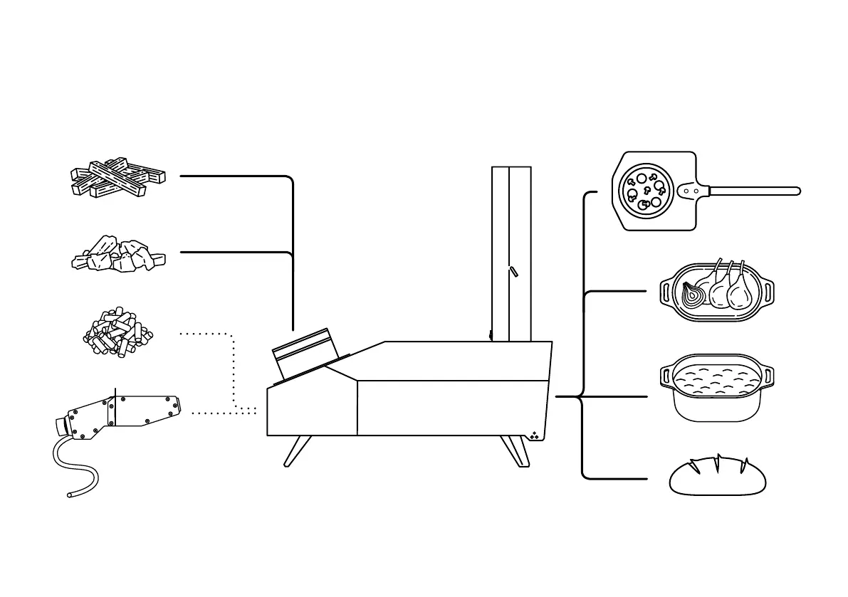 *pellet burner required if using pellets. Pellet burner and gas burner sold separately at uuni.net. Region dependent.