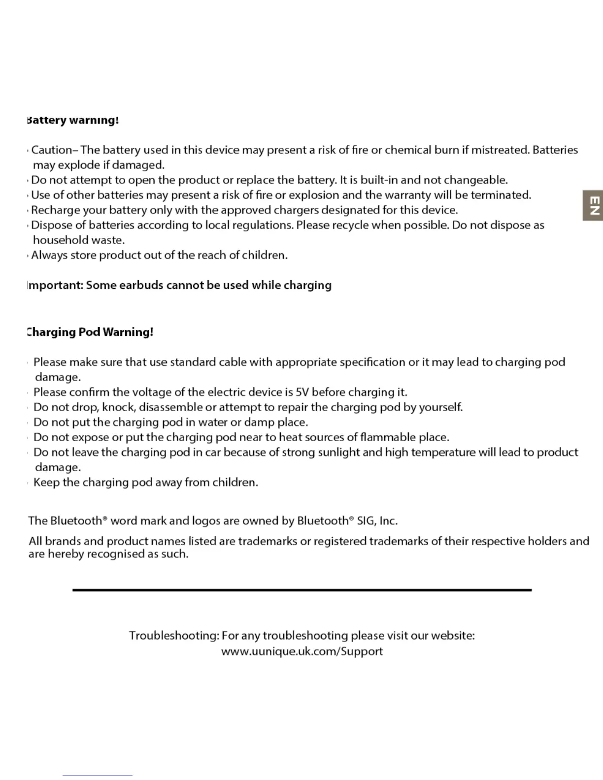 Uunique FREEDOM - Battery Warning; Charging Pod Warning